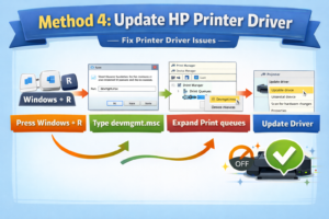 HP printer offline issues are usually caused by driver or connection problems. Following the methods above should bring your printer back online without professional help.
